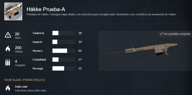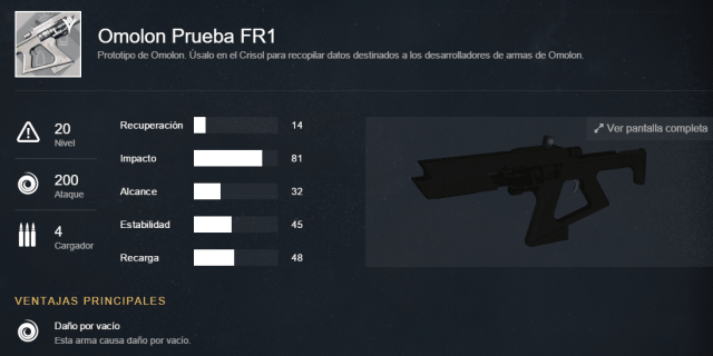 Nuestro trabajo consiste en adquirir estas armas experimentales y ponerlas a prueba en los desafíos que nos proponga cada arma, a modo de contrato. Podemos esperar desafíos como matar enemigos en lugares específicos (oponentes del Crisol, colmena en el Acorazado, etc) o asestar tiros en la cabeza con dichas armas.